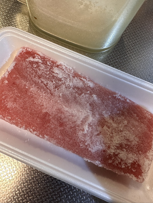 切り身の状態で買う場合は、ひと手間でも皿に移し替えて食べるようにしてます。 で、柵の場合はっていうと!